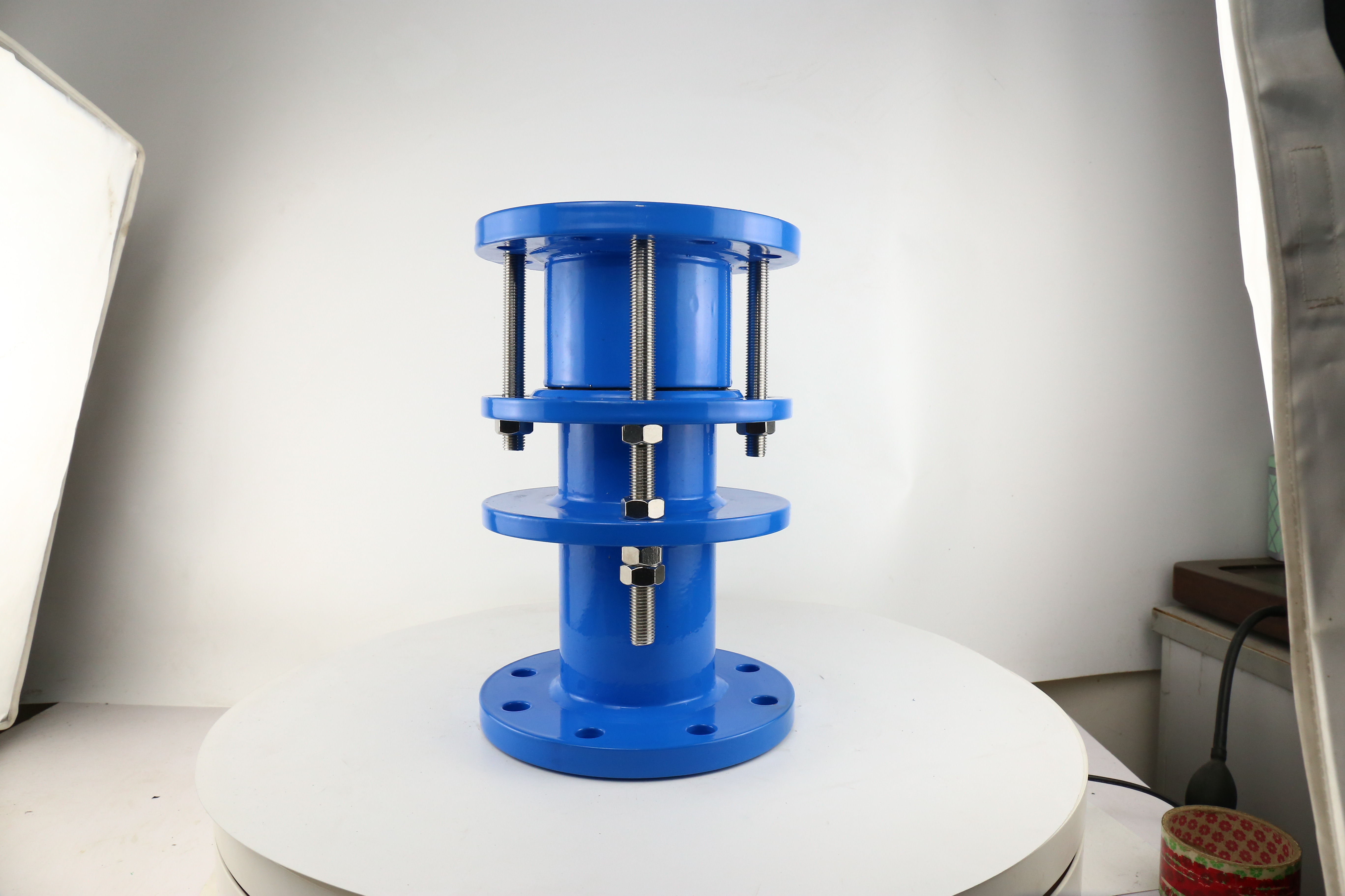 限位伸縮接頭本體上有四片法蘭,并且有限位螺栓和短螺栓,但螺栓均不超出產(chǎn)品本身;而傳力接頭本體上有三片法蘭并且螺栓均長(zhǎng)于產(chǎn)品本體。